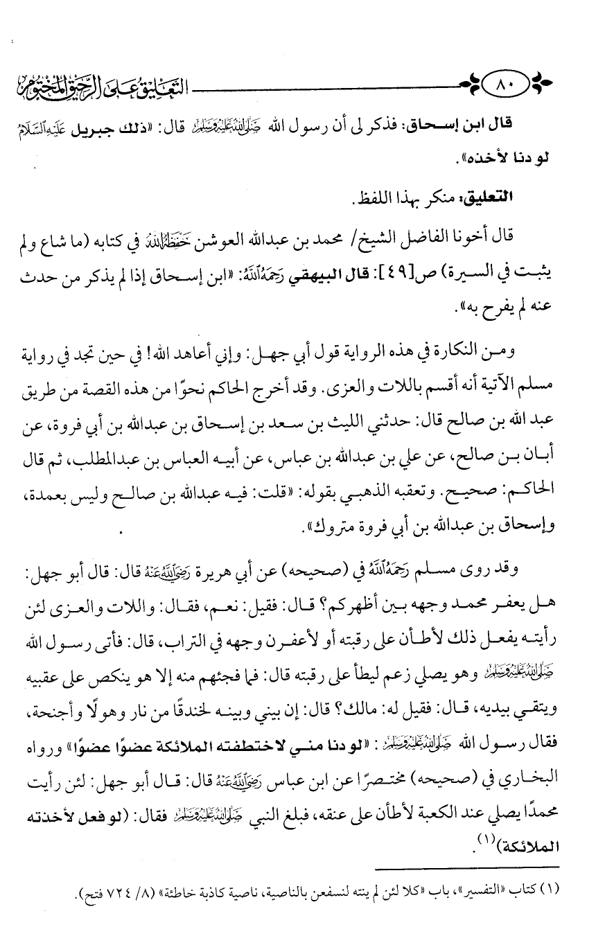 قال ابن إسحاق: فذكر لى أن رسول الله - صَلَّى اللَّهُ عَلَيْهِ وَسَلَّمَ - قال: (ذلك جبريل عليه السلام لو دنا لأخذه).