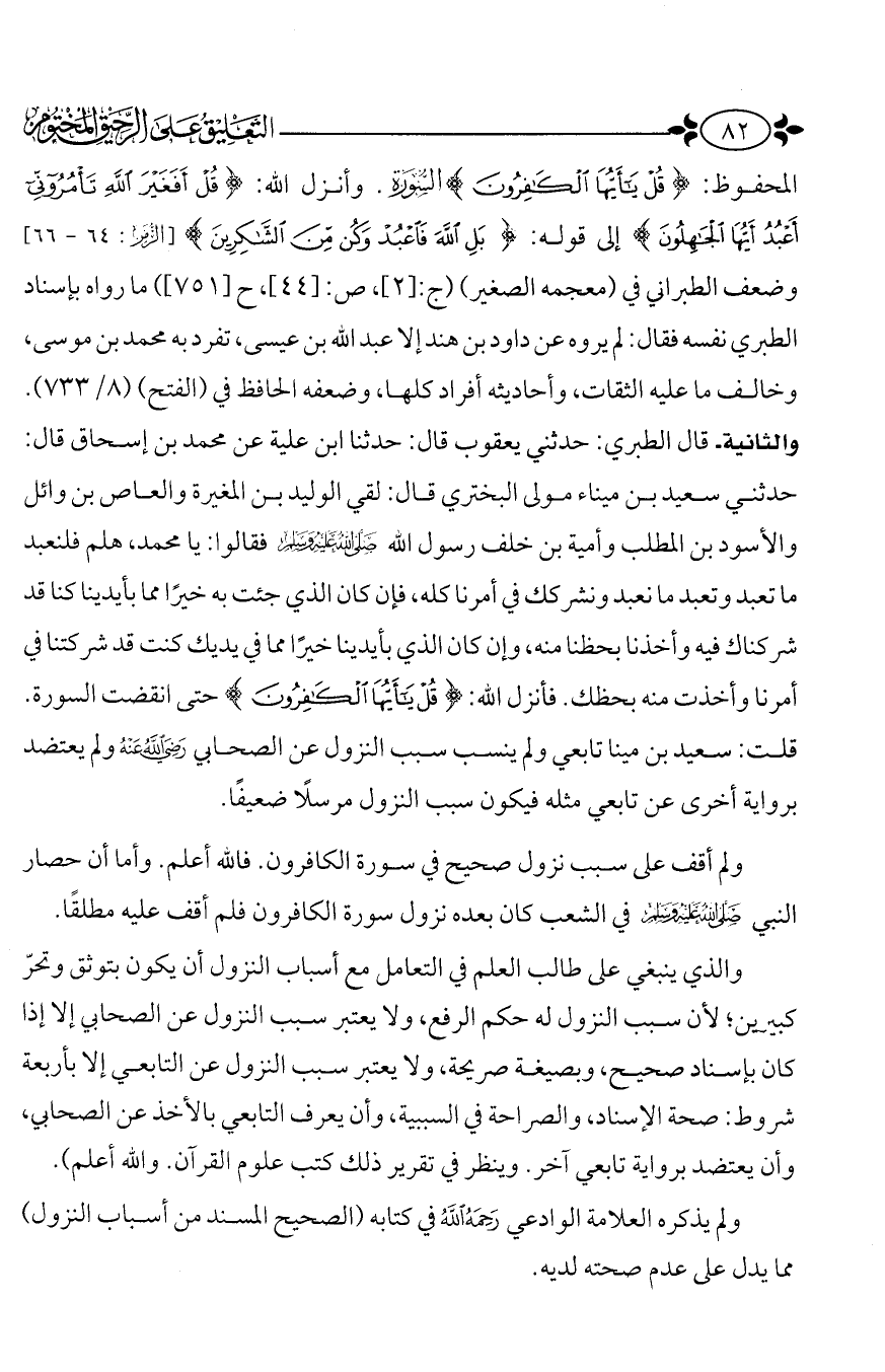قلت: سعيد بن ميناء تابعي ولم ينسب سبب النزول عن الصحابي - رضي الله عنه - ولم يعتضد برواية أخرى عن تابعي مثله فيكون سبب النزول مرسلًا ضعيفًا.