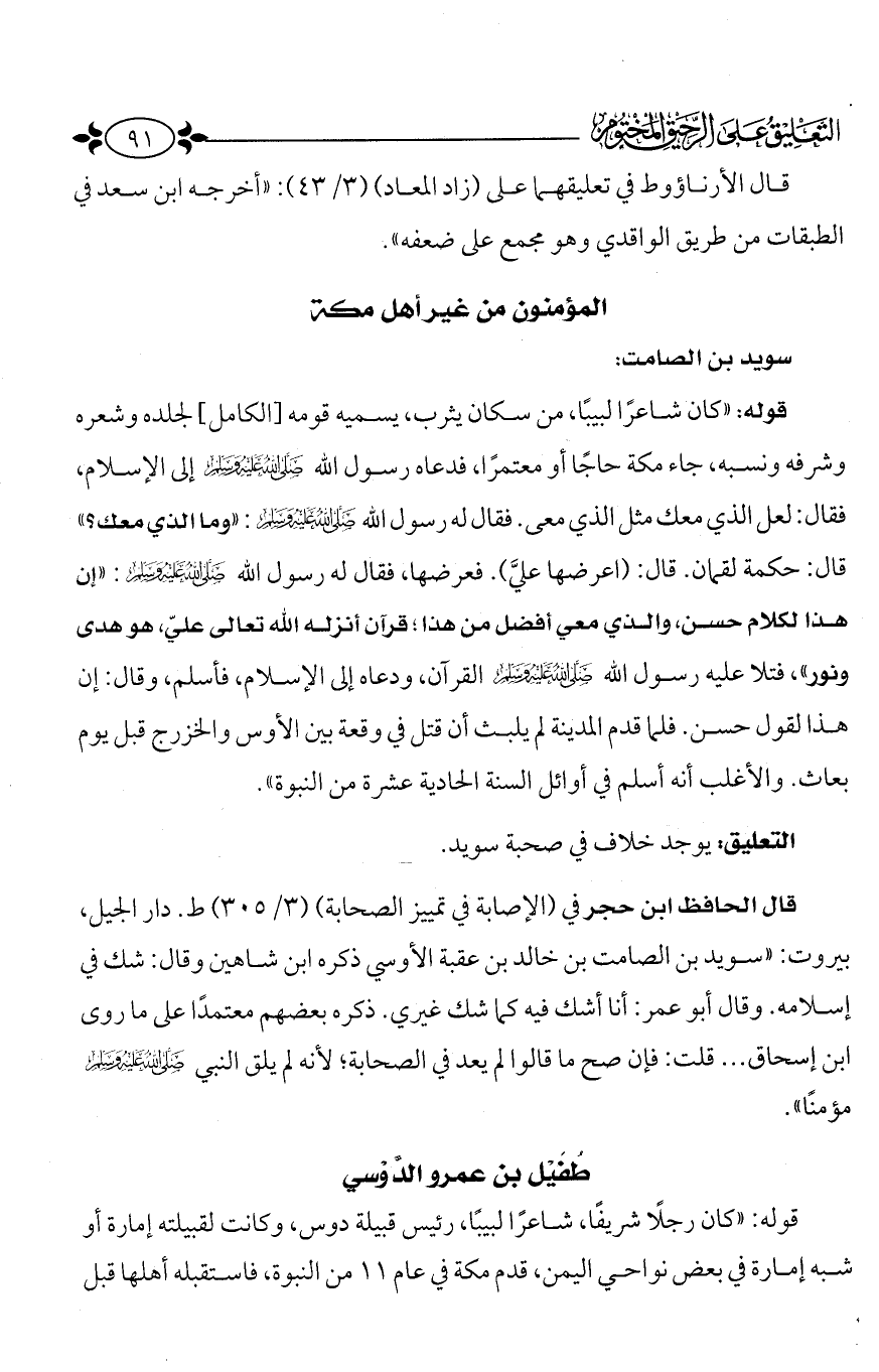 قوله: (كان شاعرًا لبيبًا، من سكان يثرب، يسميه قومه [الكامل] لجلده وشعره وشرفه ونسبه، جاء مكة حاجًا أو معتمرًا، فدعاه رسول الله - صَلَّى اللَّهُ عَلَيْهِ وَسَلَّمَ - إلى الإسلام، فقال: لعل الذي معك مثل الذي معى. فقال له رسول الله - صَلَّى اللَّهُ عَلَيْهِ وَسَلَّمَ -: (وما الذي معك؟) قال: حكمة لقمان. قال: (اعرضها عليَّ). فعرضها، فقال له رسول الله - صَلَّى اللَّهُ عَلَيْهِ وَسَلَّمَ -: (إن هذا لكلام حسن، والذي معي أفضل من هذا؛ قرآن أنزله الله تعالى عليّ، هو هدى ونور)، فتلا عليه رسول الله - صَلَّى اللَّهُ عَلَيْهِ وَسَلَّمَ - القرآن، ودعاه إلى الإسلام، فأسلم، وقال: إن هذا لقول حسن. فلما قدم المدينة لم يلبث أن قتل في وقعة بين الأوس والخزرج قبل يوم بعاث. والأغلب أنه أسلم في أوائل السنة الحادية عشرة من النبوة).