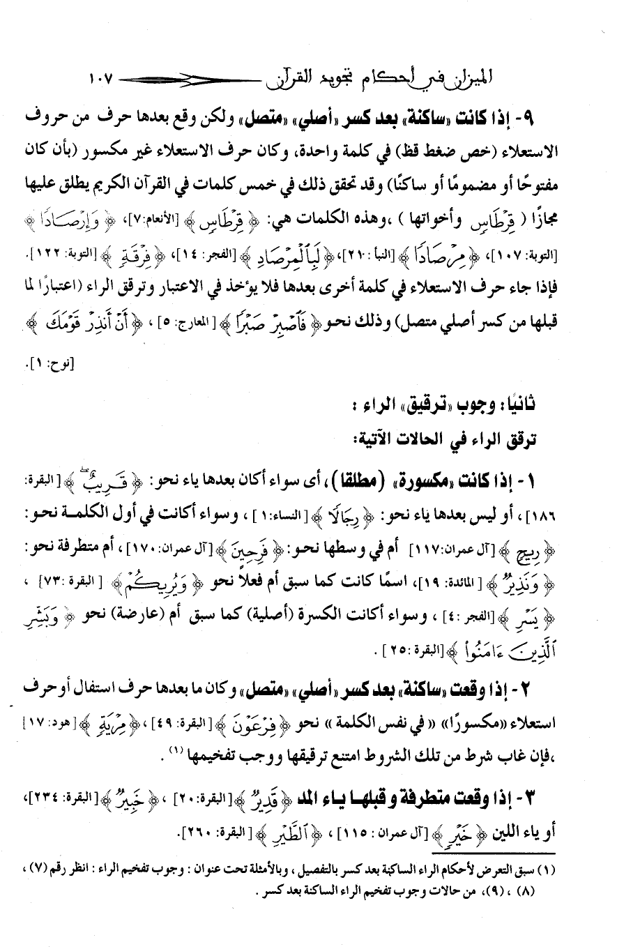 (إفادة) جميع الكلمات التي يجوز فيها الوجهان «الترقيق» فيها أولى فيما عدا (مصر) «فالتفخيم» فيها أولى.