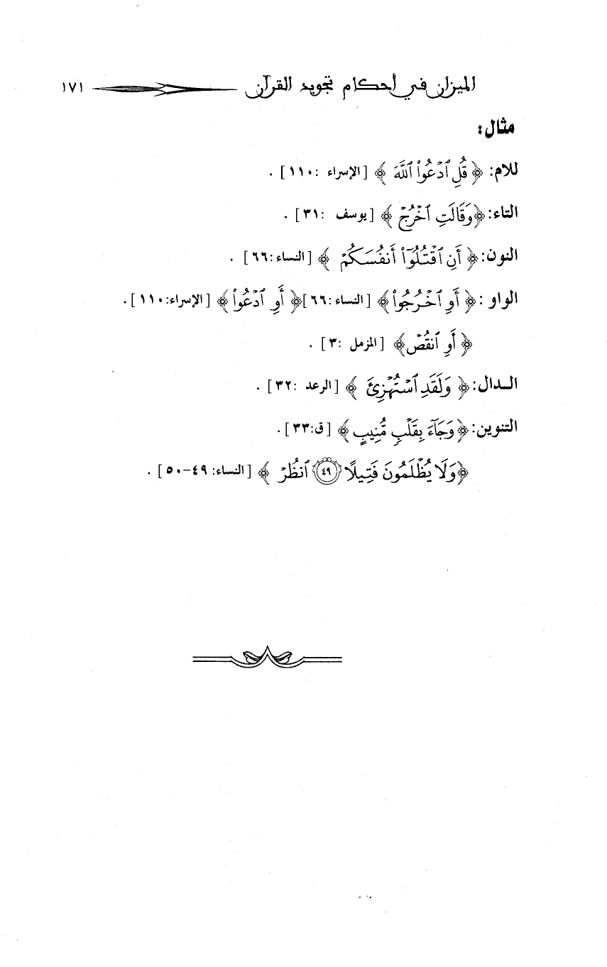 : المد بالياء: (يأتي)، (بصير)، (قدير)، (سميع)، (أمين).