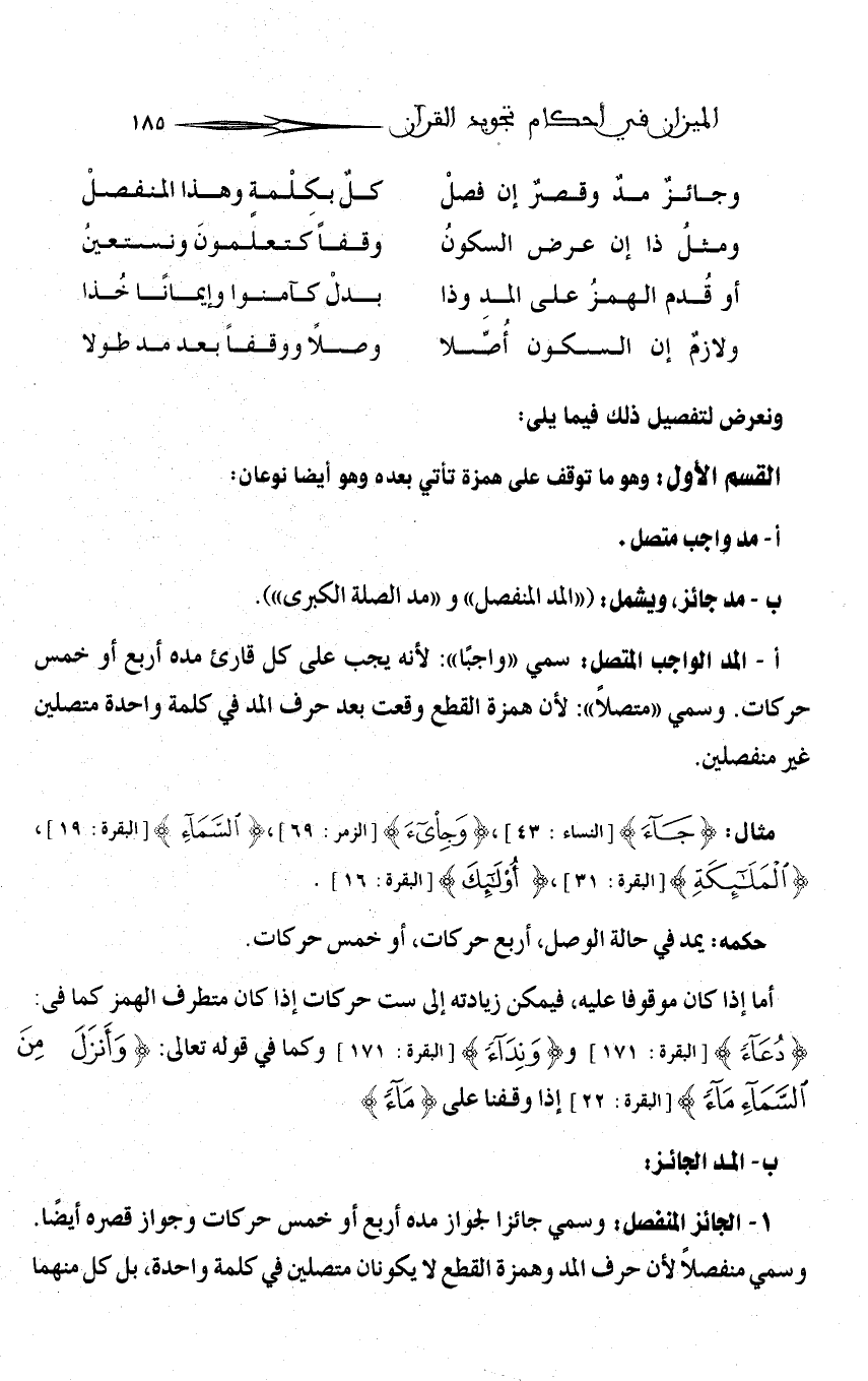 ومن الأمور التي تستوجب عناية القارئ أيضا أن يأتي بعد حرف المد حرف مماثل له، ولكنه متحرك نحو (اصبروا وصابروا) ومثل (آمنوا وعملوا) و (الذي يرسل)، ففي المثالين الأول والثاني نلاحظ أن (واو المد أعقبها حرف
