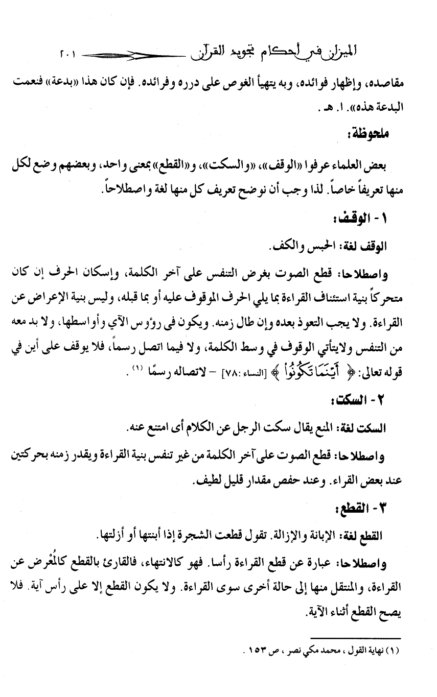 من علامات الوقف التام: 1 - يكون على رءوس الآي: كالوقف على قوله وَأُولئِكَ هُمُ الْمُفْلِحُونَ [البقرة: 5]