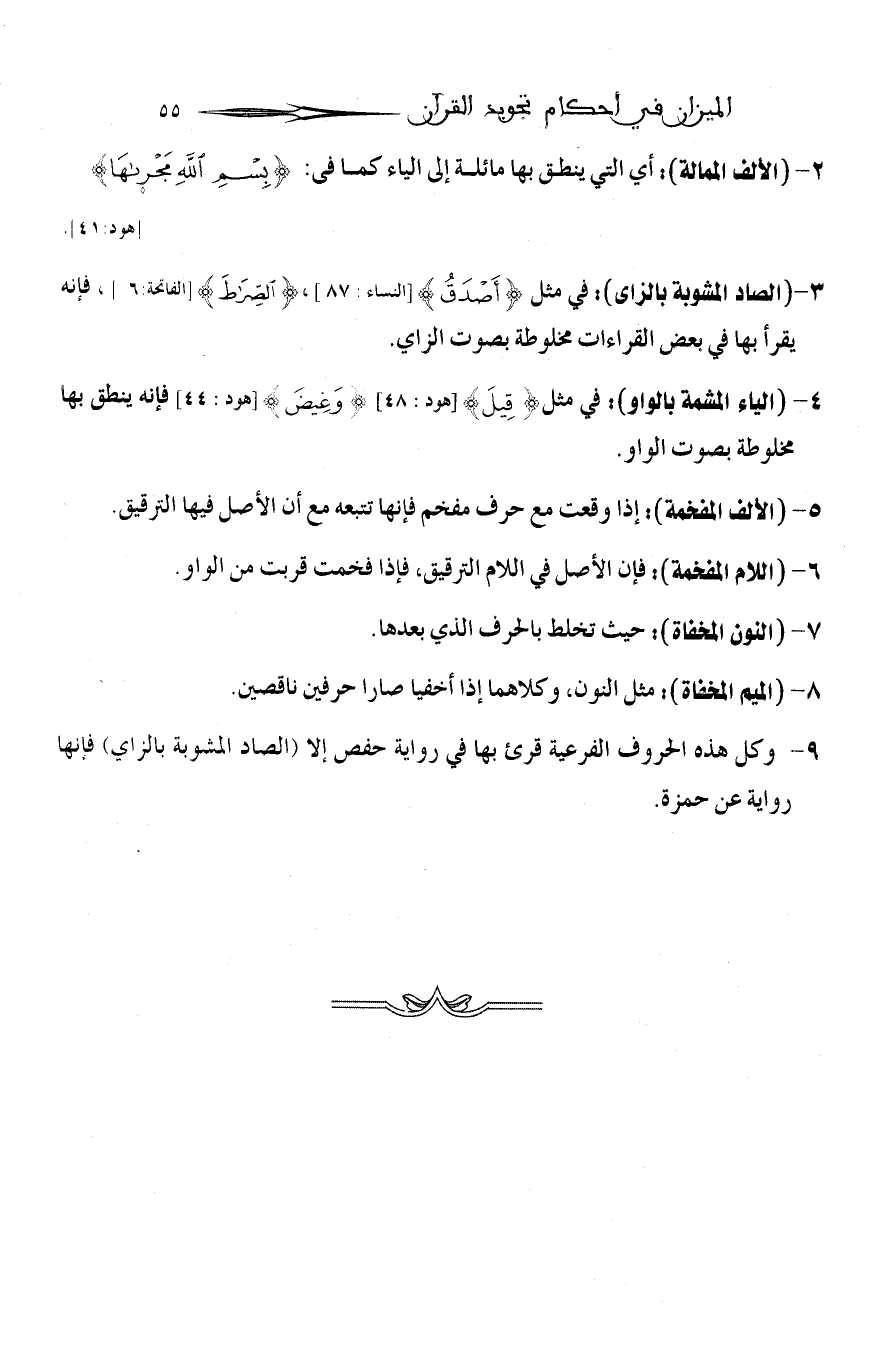 9 - وكل هذه الحروف الفرعية قرئ بها في رواية حفص إلا (الصاد المشوبة بالزاي) فإنها رواية عن حمزة.