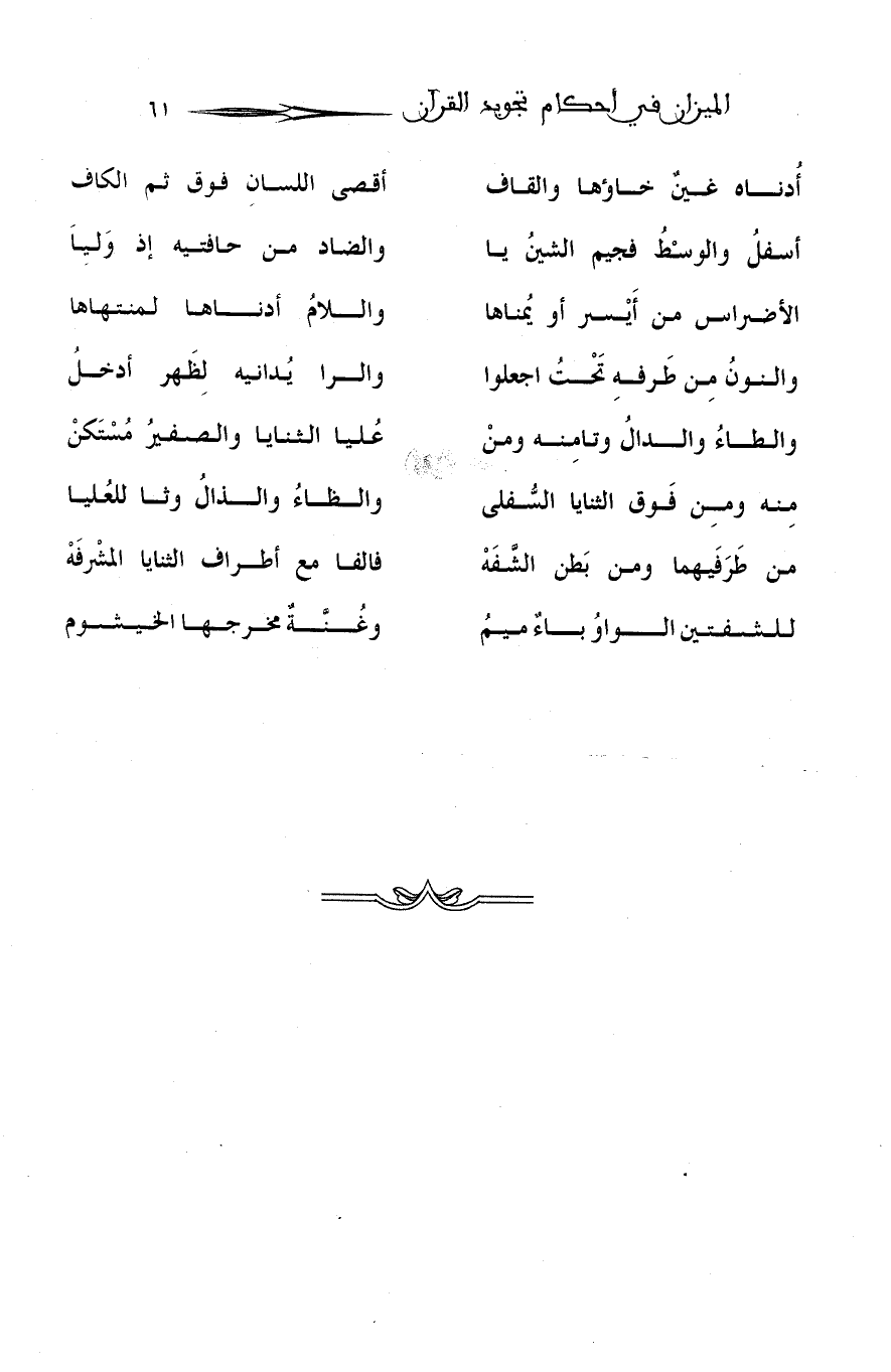 الأضراس من أسفل أو يمناها ... واللام أدناها لمنتهاها