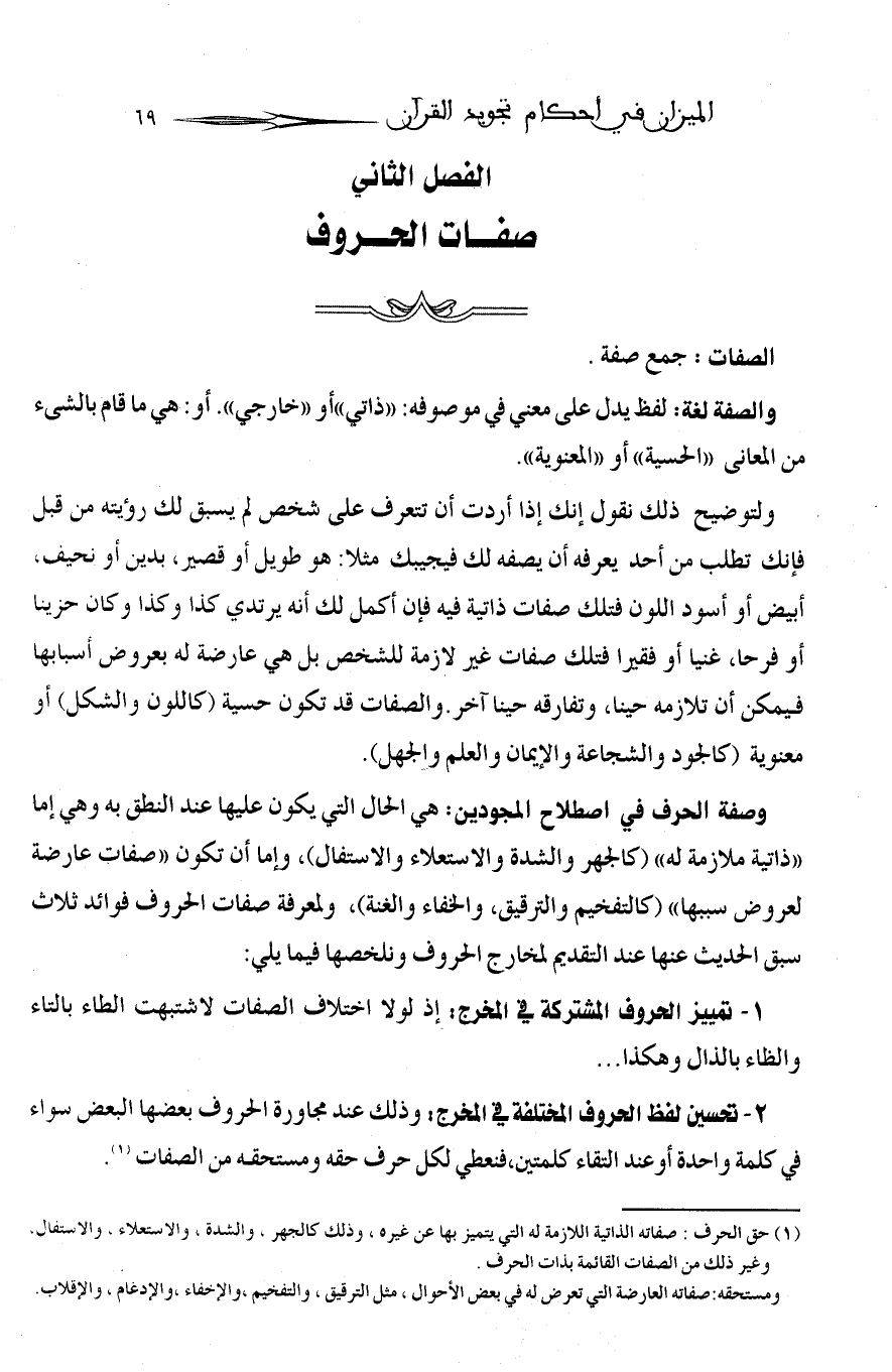 (¬1) حق الحرف: صفاته الذاتية اللازمة له التي يتميز بها عن غيره، وذلك كالجهر، والشدة، والاستعلاء، والاستفال، وغير ذلك من الصفات القائمة بذات الحرف.