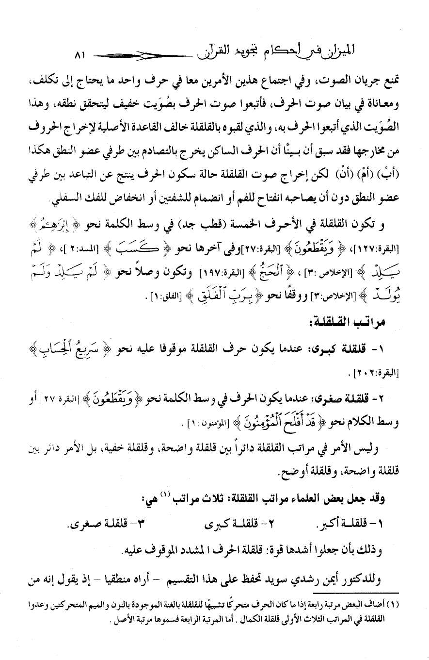 3 - مد صوت القلقلة، وتمطيطه زمنا يجاوز مستحقه.