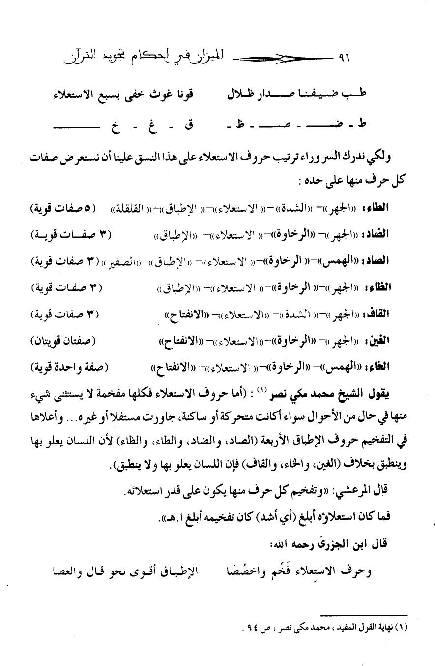 1 - «الضاد»: «من أعسر الحروف نطقا وتحتاج إلى كثير من الدربة والمهارة ولا يحسن النطق بها إلا الحاذقون المهرة، فيجب الحذر من أن تخرج عند النطق أقرب للظاء خاصة إذا جاء بعدها ظاء نحو قوله تعالى: أَنْقَضَ ظَهْرَكَ أو جاء بعدها ذال نحو مِلْءُ الْأَرْضِ ذَهَباً كما يجب ألا تلتبس بالطاء خاصة إذا وقعت بعده الطاء كما في (فمن اضطر) أو جاءت بعده تاء كما (فرضتم)، (أفضتم).