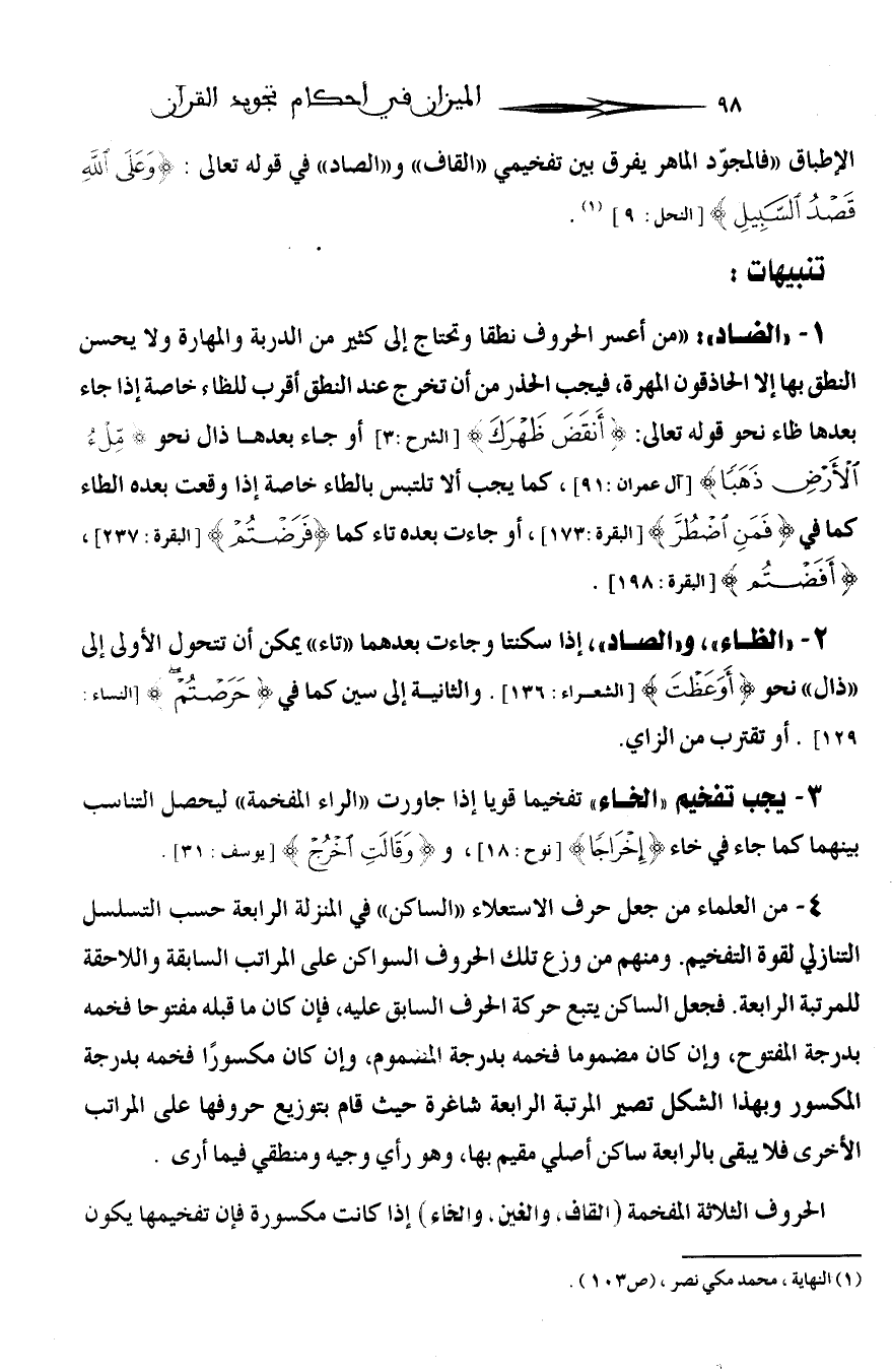 2 - وكما ينبغي الحرص على احتفاظ الحروف المستفلة بمستحقها من الترقيق ينبغي أيضا عدم المبالغة في ذلك الترقيق حتى لا تبدو وكأنها ممالة.