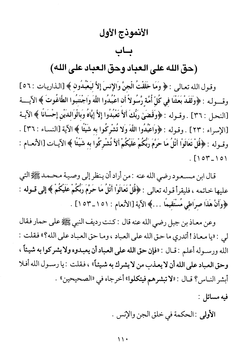 الأنموذج الأول باب (حق الله على العباد وحق العباد على الله)