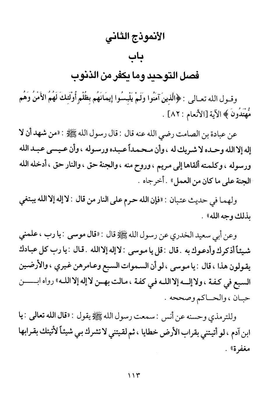 الأنموذج الثاني باب فضل التوحيد وما يكفر من الذنوب