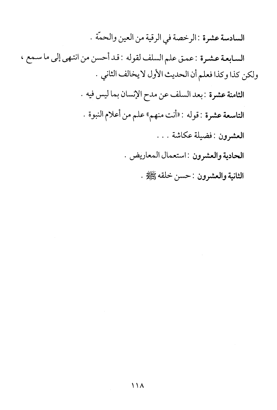 السابعة عشرة: عمق علم السلف لقوله: قد أحسن من انتهى إلى ما سمع، ولكن كذا وكذا. فعلم أن الحديث الأول لا يخالف الثاني.