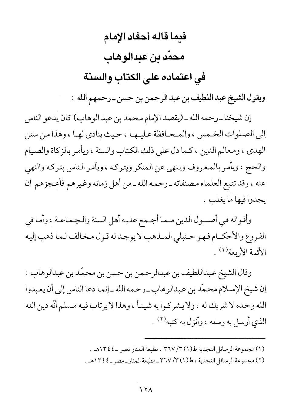 2 مجموعة الرسائل النجدية ط (1) 3/367. مطبعة المنار مصر –1344هـ.
