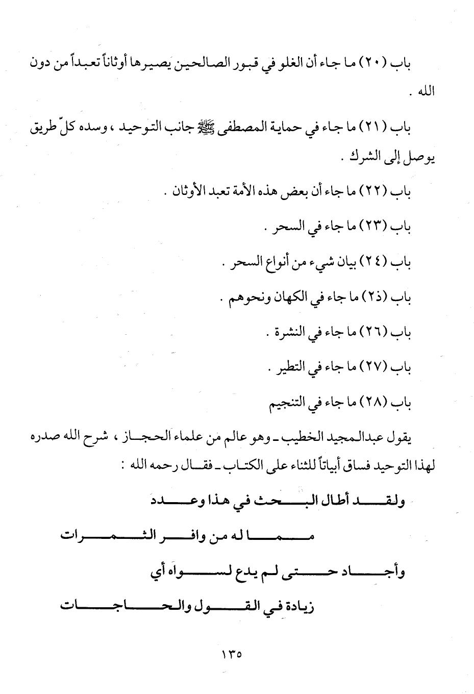 يقول عبد المجيد الخطيب -وهو عالم من علماء الحجاز، شرح الله صدره لهذا التوحيد فساق أبياتاً للثناء على الكتاب– فقال رحمه الله: