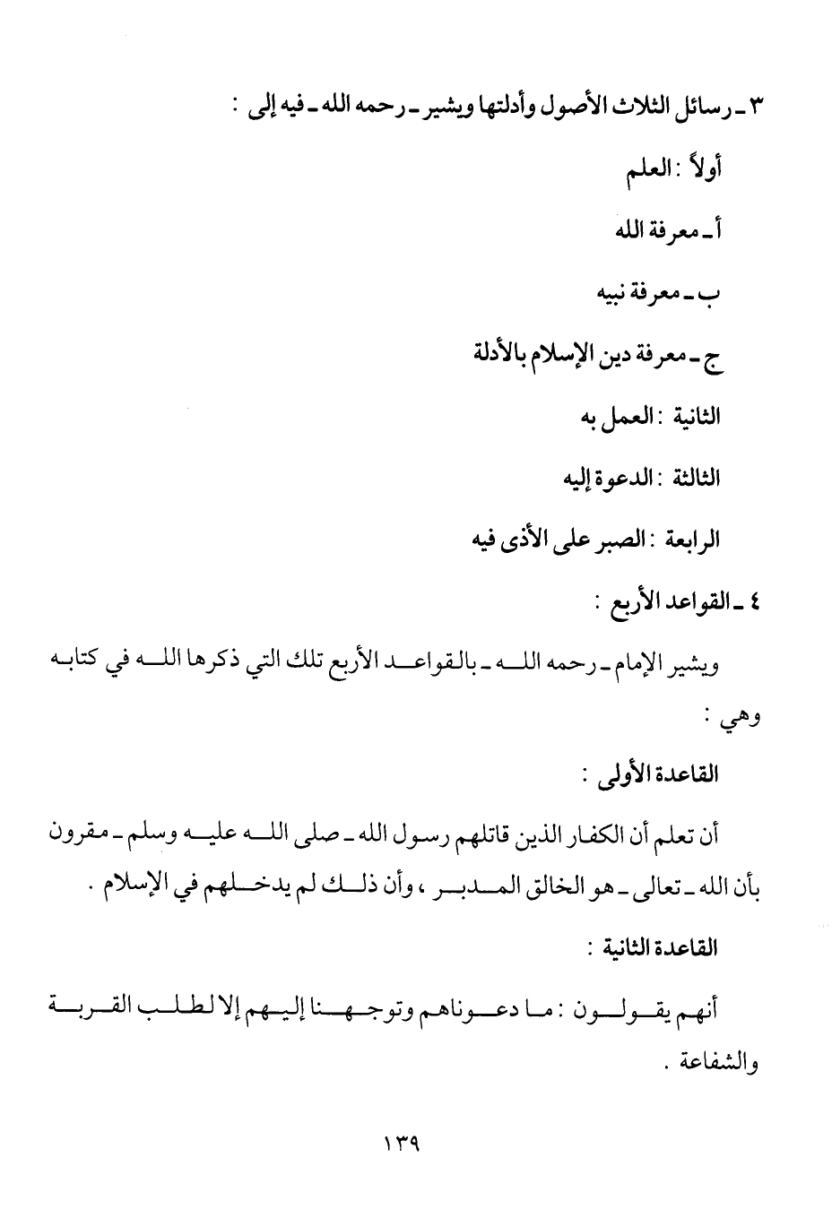 ويشير الإمام رحمه الله بالقواعد الأربع تلك التي ذكرها الله في كتابه وهي:
