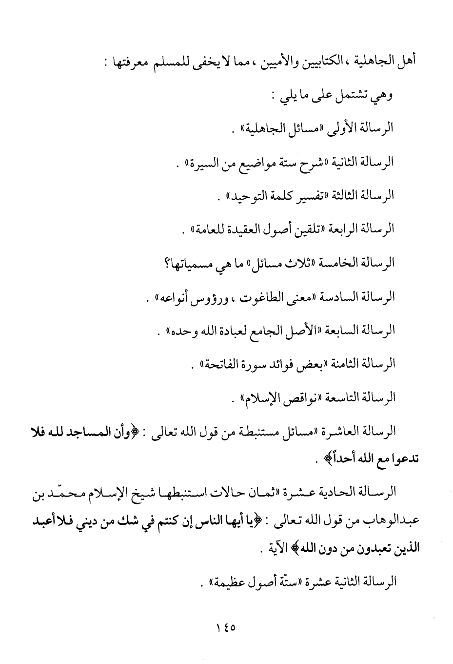 الرسالة الحادية عشرة "ثمان حالات استنبطها شيخ الإسلام محمد بن عبد الوهاب من قول الله تعالى: {يَا أَيُّهَا النَّاسُ إِنْ كُنْتُمْ فِي شَكٍّ مِنْ دِينِي فَلا أَعْبُدُ الَّذِينَ تَعْبُدُونَ مِنْ دُونِ اللَّه} الآية.