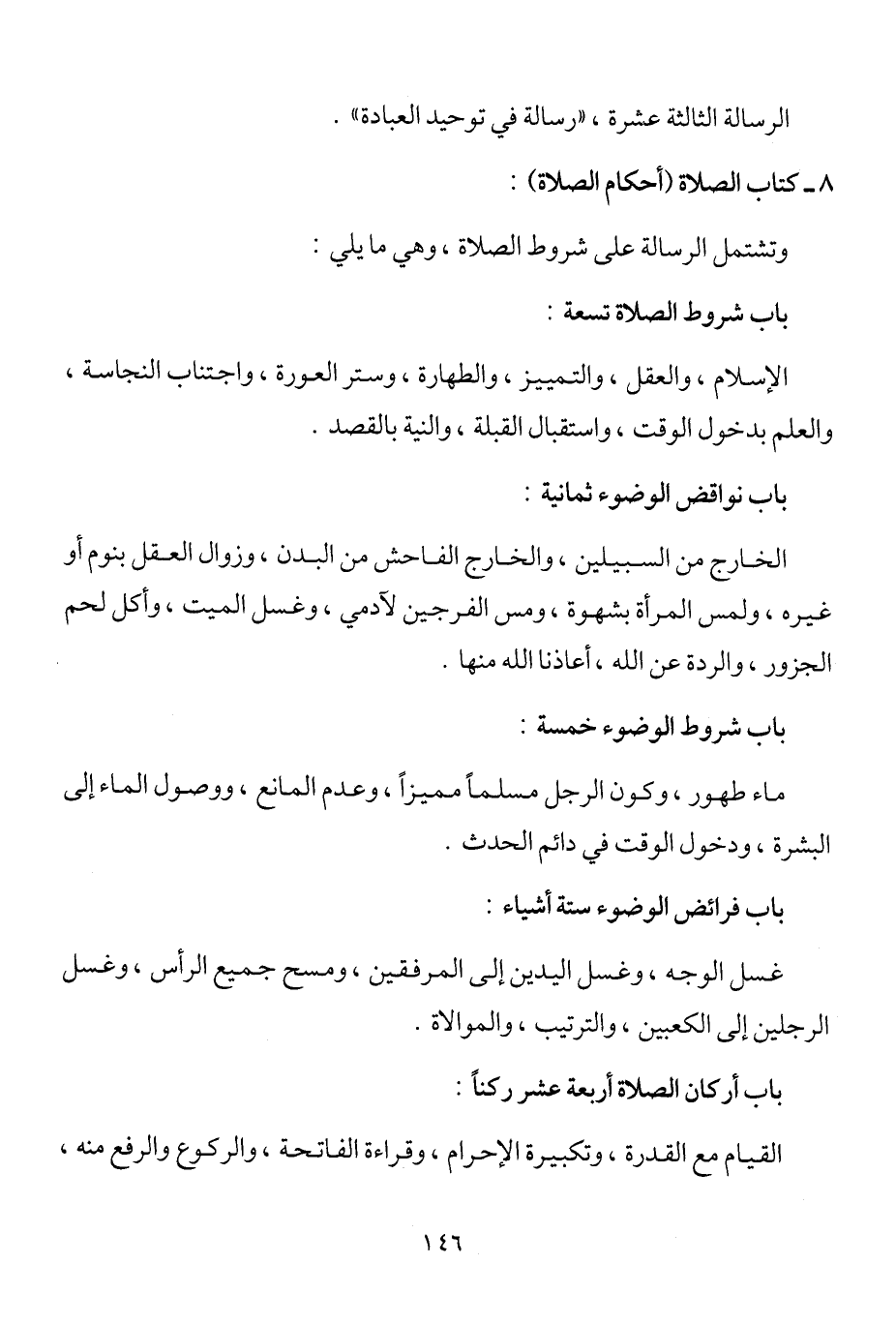 وتشتمل الرسالة على شروط الصلاة، وهي ما يلي: