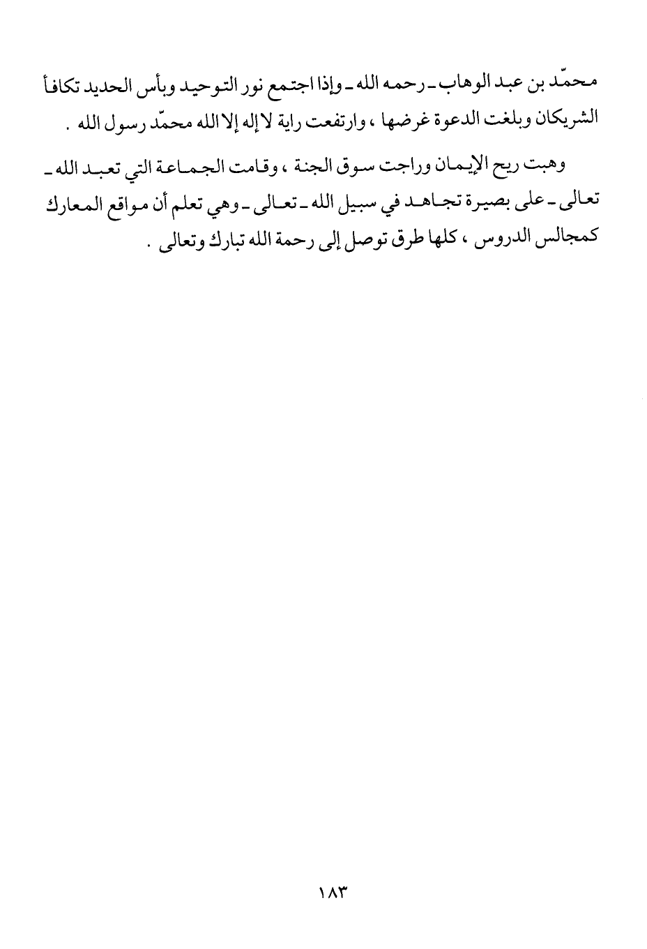 محمد بن عبد الوهاب رحمه الله وإذا اجتمع نور التوحيد وبأس الحديد تكافأ الشريكان وبلغت الدعوة غرضها، وارتفعت راية لا إله إلا الله محمد رسول الله.