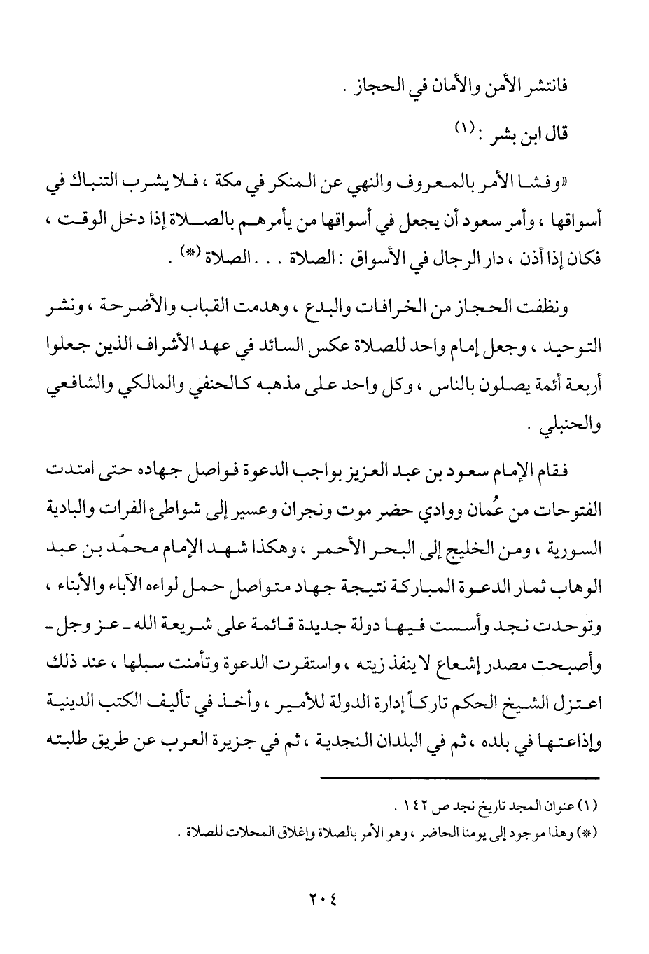 "وفشا الأمر بالمعروف والنهي عن المنكر في مكة، فلا يشرب التنباك في أسواقها، وأمر سعود أن يجعل في أسواقها من يأمرهم بالصلاة إذا دخل الوقت، فكان إذا أذن، دار الرجال في الأسواق: الصلاة ... الصلاة2.