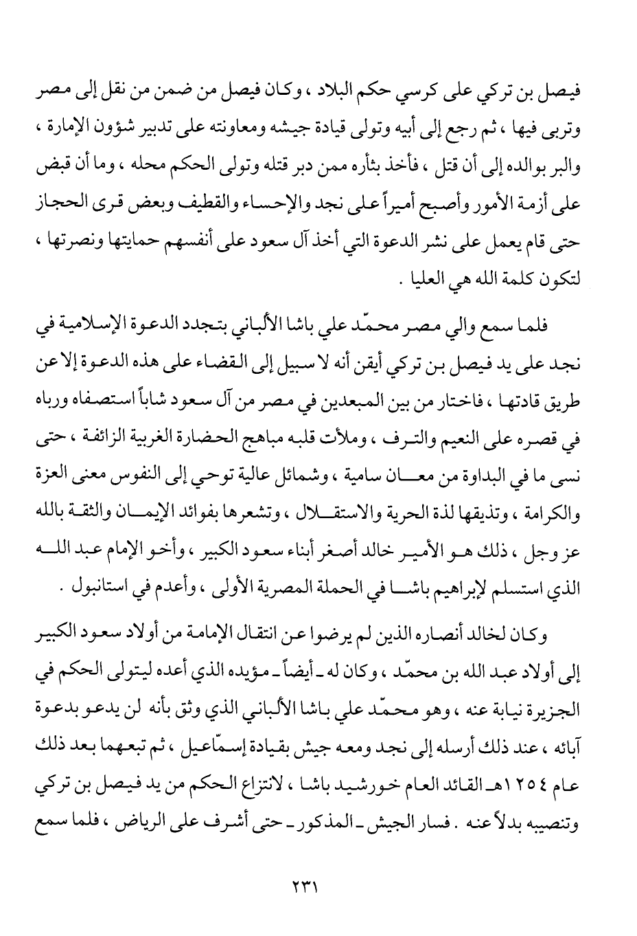مشاري بن عبد الرحمن بن مشاري بن سعود، أخو محمد بن سعود الكبير، فكرة اغيال الإمام تركي، والاستئثار بالإمارة من دونه، فعهد إلى أحد الخدم بذلك، فجاء إليه وهو خارج من المسجد عقب صلاة الجمعة عام 1249هـ وهو منشغل بقراءة عريضة رفعت إليه من أحد الرعايا، فأرداه قتيلاً، ومن الحق أن نقول: "بأنه لولا صبر الإمام تركي وجهاده وجهوده المتواصلة في سبيل إصلاح التركة التي تسلمها مثقلة بالخراب والدمار لما قامت الدولة العربية الإسلامية في جزيرة الإسلام، ولم يكتف تركي رحمه الله بتحرير البلدان من سيطرة الألباني محمد علي، وإنما أنقذها أيضاً من سيطرة الزعماء الإقليميين، "المتنافسين والمتقاتلين"، وفي ذلك يقول ابن بشر: "كان تركي رحمه الله شجاعاً مقداماً، مجاهداً في سبيل الله، افتتح قرى نجد واستولى عليها بالحرب والصلح بعد أن كان بعضهم يضرب رقاب بعض، وكان أمير كل بلد شاهراً سيفه لمحاربة البلد التي تليه، فجاهد حق الجهاد حتى أطاعت له البلاد والعباد، وصاروا كلهم جماعة، وبايعوه على السمع والطاعة1. ثم انتهت حياة هذا الإمام على يد ابن عمه مشاري الذي تقدم ونادى بنفسه أميراً على البلدة فخضع الناس له، وكان فيصل بن الإمام تركي -القتيل- غائباً في أطراف القطيف على رأس جيش عظيم لإقرار السلام في تلك الجهات، فما أن بلغه الخبر حتى قفل راجعاً إلى الرياض فبلغها في الحادي عشر من شهر صفر سنة 1250هـ، ودخلها عنوة فاحتمى مشاري بقصره، فاقتحمه أحد رجال فيصل، ودخل عليه فقتله بعد حكم دام أربعين يوماً فقط2، وبعد قتله تربع