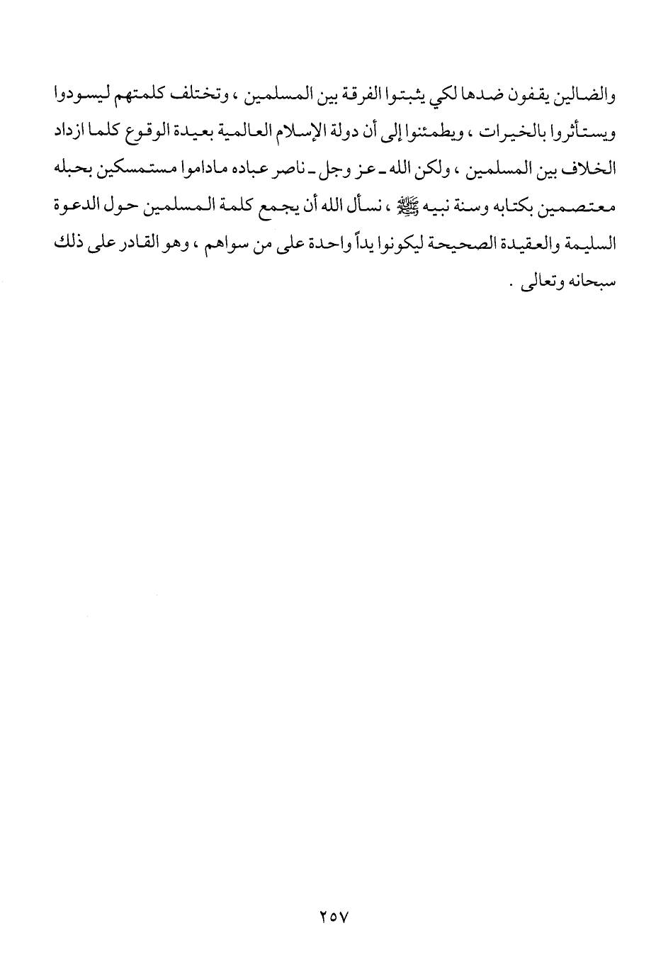 والضالين يقفون ضدها لكي يثبتوا الفرقة بين المسلمين، وتختلف كلمتهم ليسودوا ويستأثروا بالخيرات، ويطمئنوا إلى أن دولة الإسلام العالمية بعيدة الوقوع كلما ازداد الخلاف بين المسلمين، ولكن الله عز وجل ناصر عباده ما داموا مستمسكين بحبله معتصمين بكتابه وسنة نبيه صلى الله عليه وسلم، نسأل الله أن يجمع كلمة المسلمين حول الدعوة السليمة والعقيدة الصحيحة ليكونوا يداً واحدة على من سواهم، وهو القادر على ذلك سبحانه وتعالى.