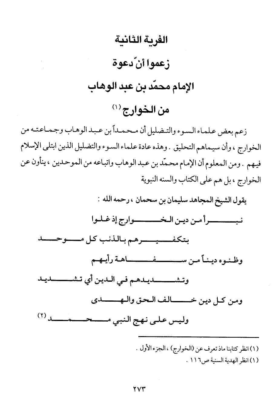 الفصل الثاني: الفرية الثانية زعموا أن دعوة الإمام محمد بن عبد الوهاب من الخوارج