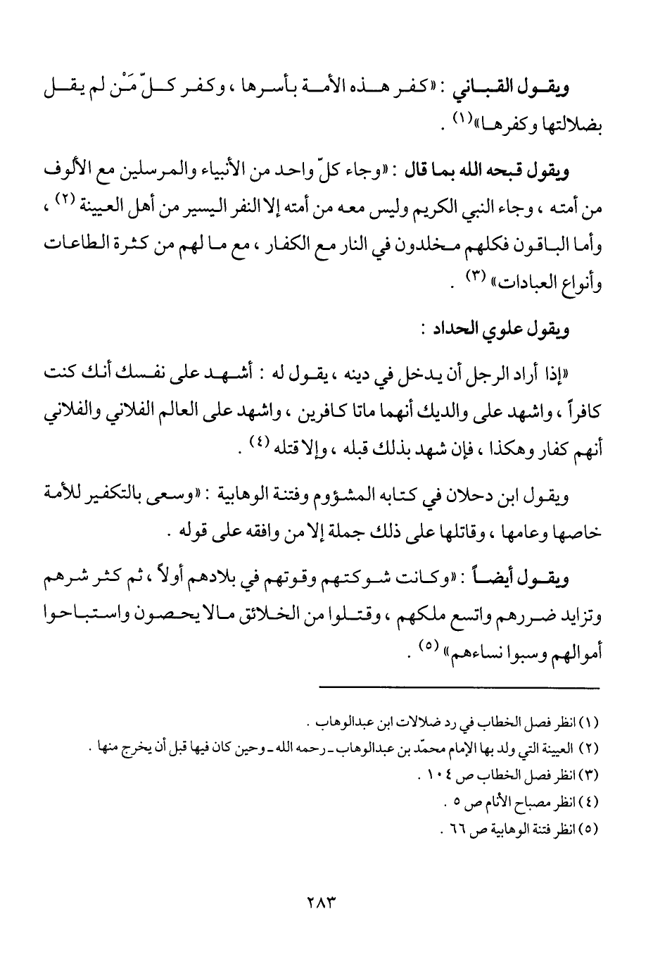 1 انظر فصل الخطاب في رد ضلالات ابن عبد الوهاب.