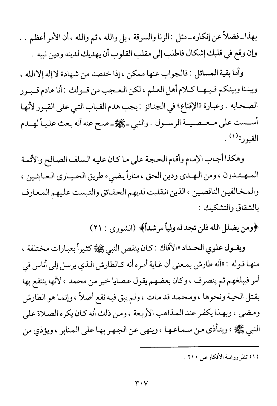 وهكذا أجاب الإمام وأقام الحجة على ما كان عليه السلف الصالح والأئمة المهتدون، ومن الهدى ودين الحق، مناراً يضيء طريق الحيارى العابثين، والمخالفين الناقصين، الذين انقلبت لديهم الحقائق والتبست عليهم المعارف بالشقاق والتشكيك: {وَمَنْ يُضْلِلْ فَلَنْ تَجِدَ لَهُ وَلِيّاً مُرْشِداً} (الكهف: 17) .