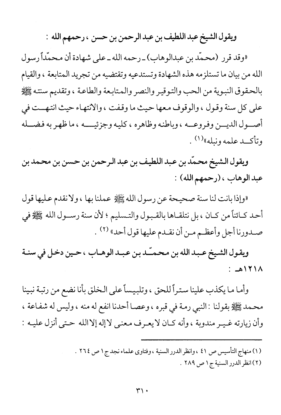 ويقول الشيخ محمد بن عبد اللطيف بن عبد الرحمن بن حسن بن محمد بن عبد الوهاب (رحمهم الله) :