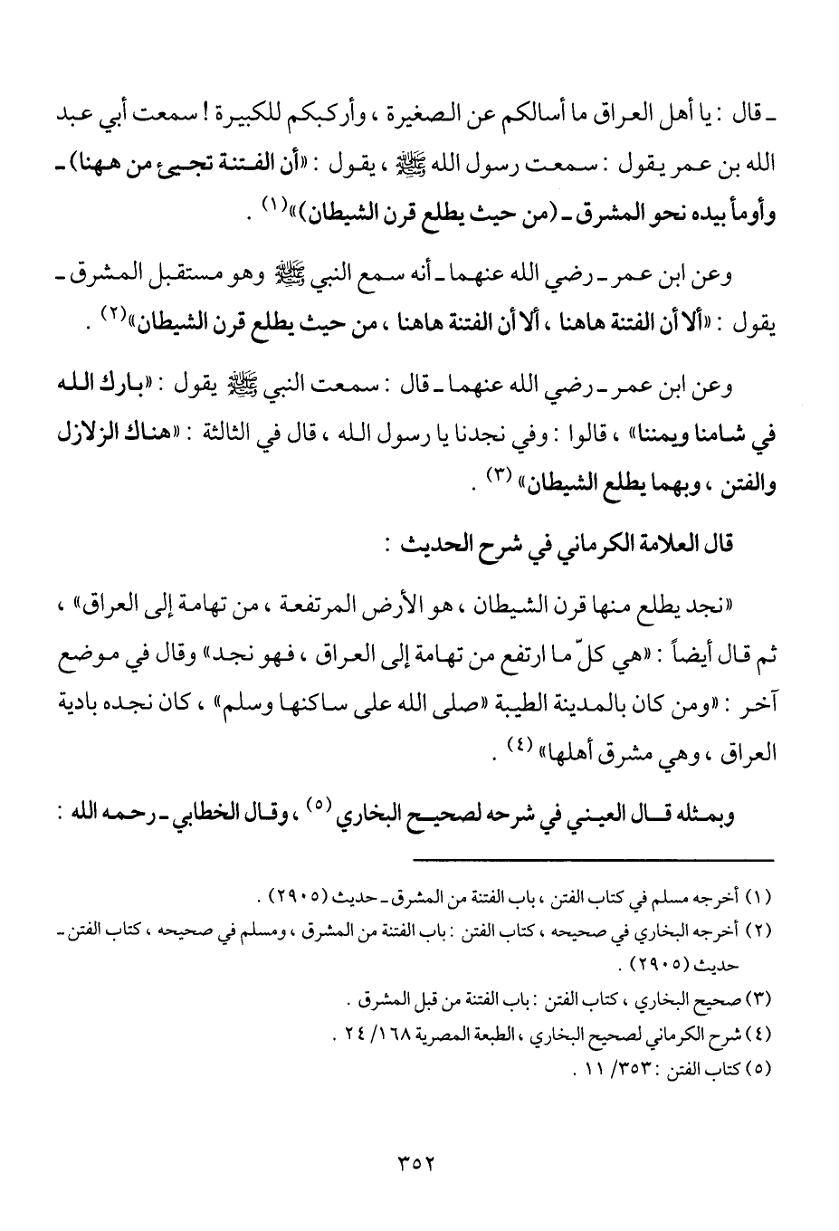 2 أخرجه البخاري في صحيحه، كتاب الفتن: باب الفتنة من المشرق، ومسلم في صحيحه كتاب الفتن حديث 2905.
