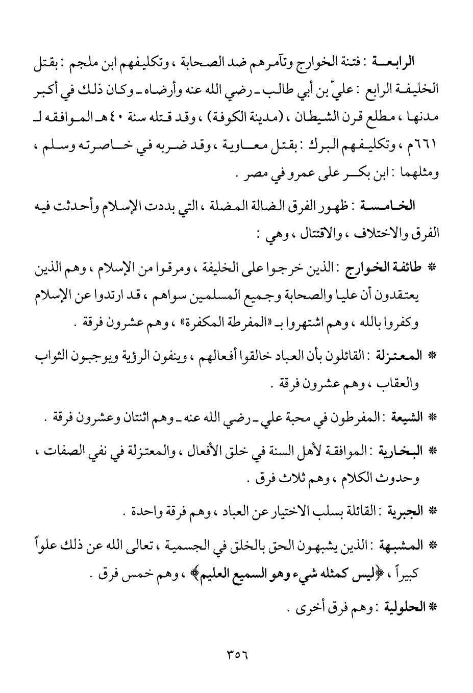 الخامسة: ظهور الفرق الضالة المضلة، التي بددت الإسلام وأحدثت فيه الفرق والاختلاف، والاقتتال، وهي:
