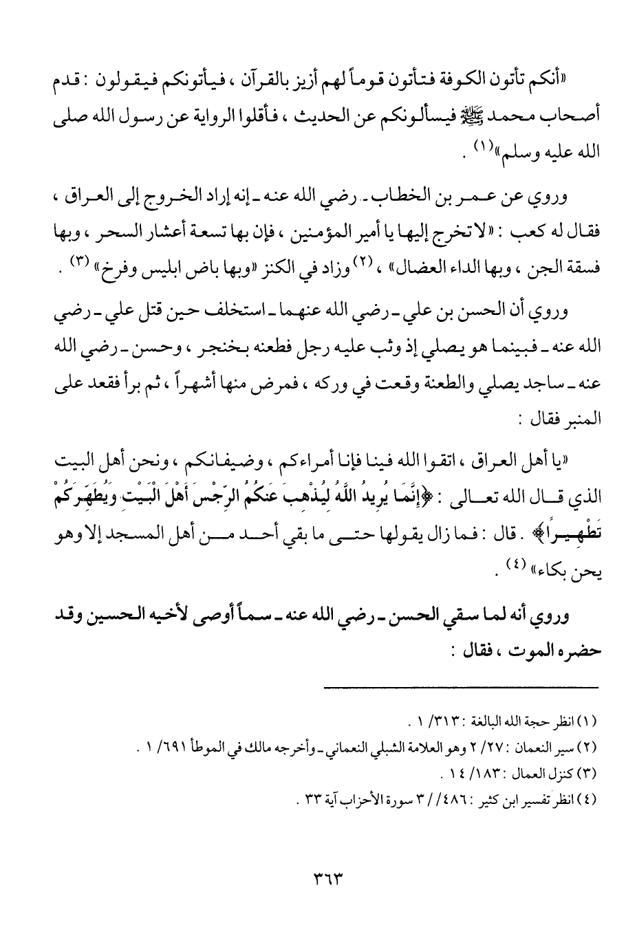 4 انظر تفسير ابن كثير 486/3، سورة الأحزاب آية 33.