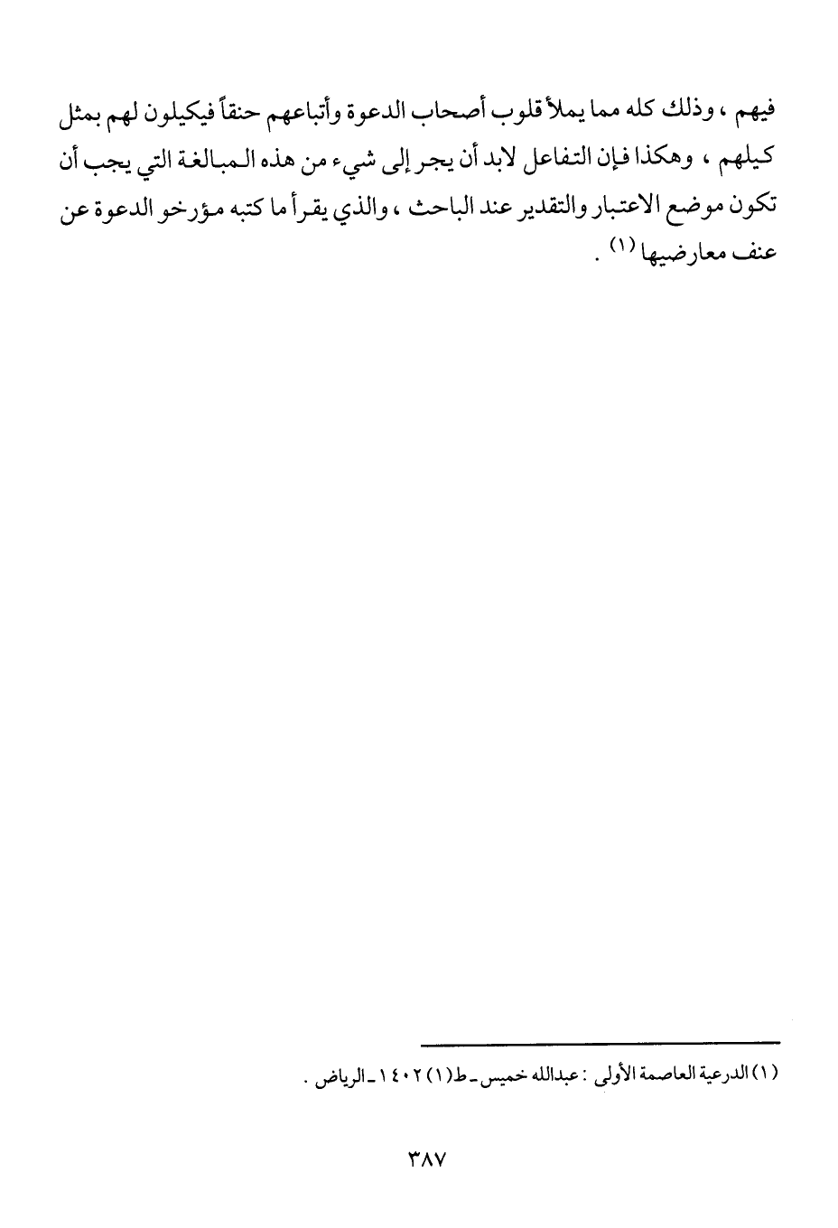 فيهم، وذلك كله مما يملأ قلوب أصحاب الدعوة وأتباعهم حنقاً فيكيلون لهم بمثل كيلهم، وهكذا فإن التفاعل لا بد أن يجر إلى شيء من هذه المبالغة التي يجب أن تكون موضع الاعتبار والتقدير عند الباحث، والذي يقرأ ما كتبه مؤرخو الدعوة عن عنف معارضيها1.