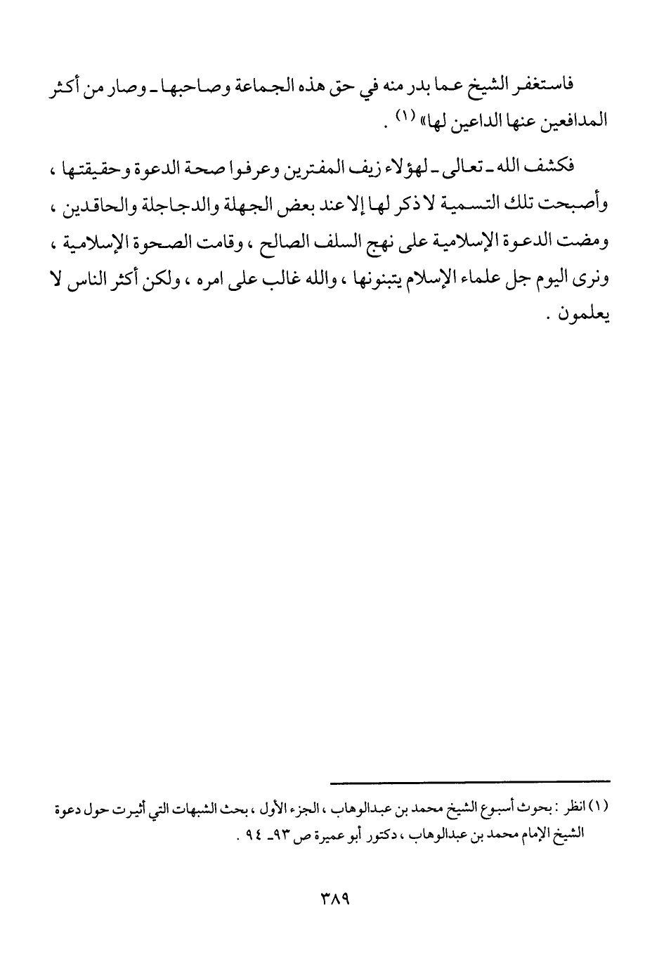 1 انظر: بحوث أسبوع الشيخ محمد بن عبد الوهاب، الجزء الأول، بحث الشبهات التي أثيرت حول دعوة الشيخ الإمام محمد بن عبد الوهاب. دكتور أبو عميرة ص 93-94.