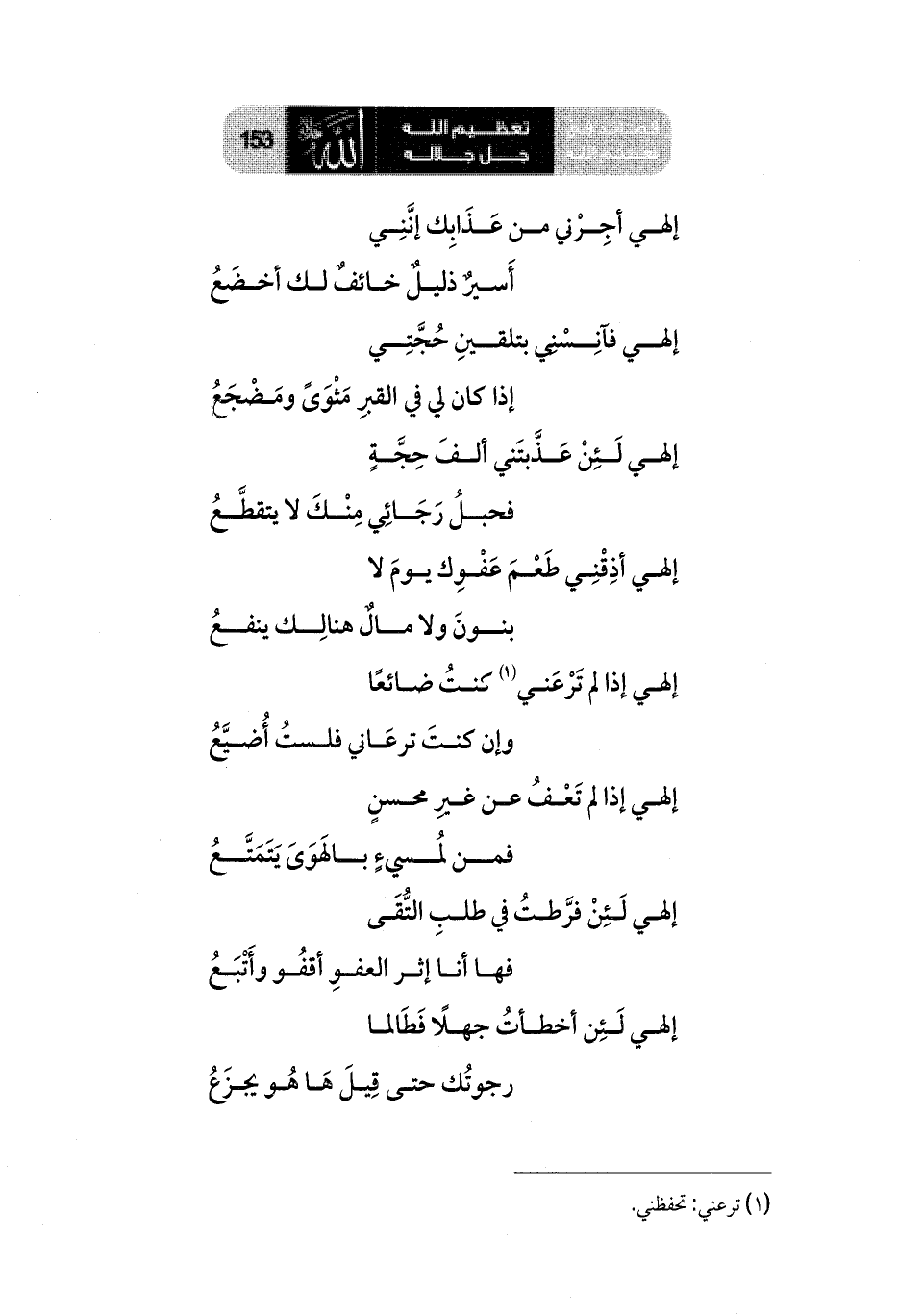 إلهي لَئِنْ عَذَّبتَني ألفَ حِجَّةٍ ... فحبلُ رَجَائِي مِنْكَ لا يتقطَّعُ