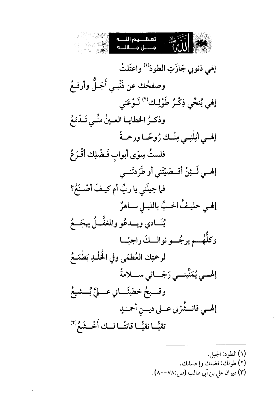 إلهي ذنوبي جَازَتِ الطودَ (¬1) واعتَلتْ ... وصفحُك عن ذَنْبي أَجَلُّ وأرفعُ