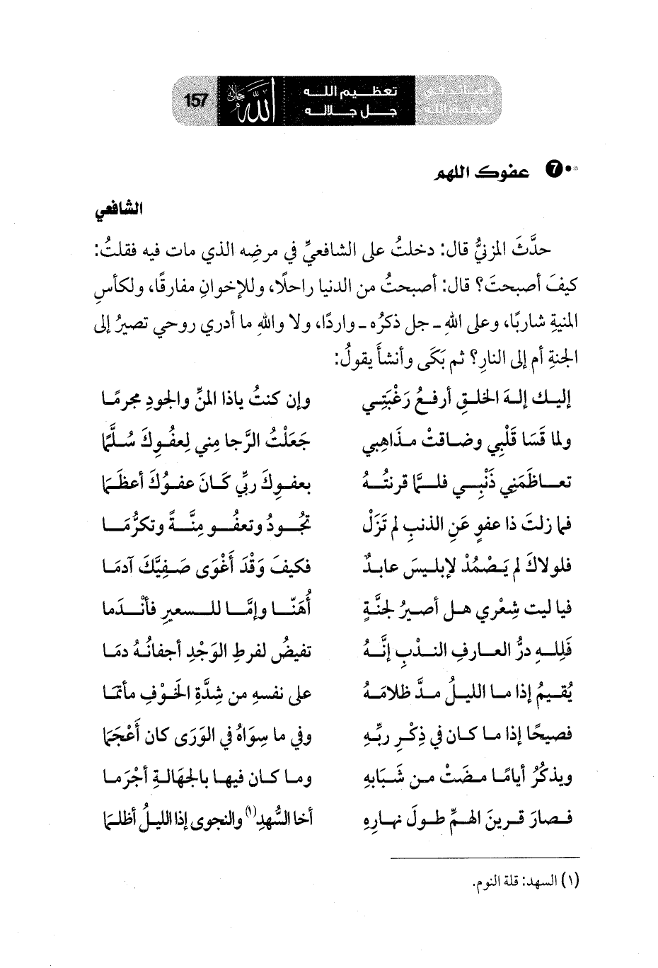 تعاظَمَنِي ذَنْبِي فلمَّا قرنتُهُ ... بعفوِكَ ربِّي كَانَ عفوُكَ أعظَمَا