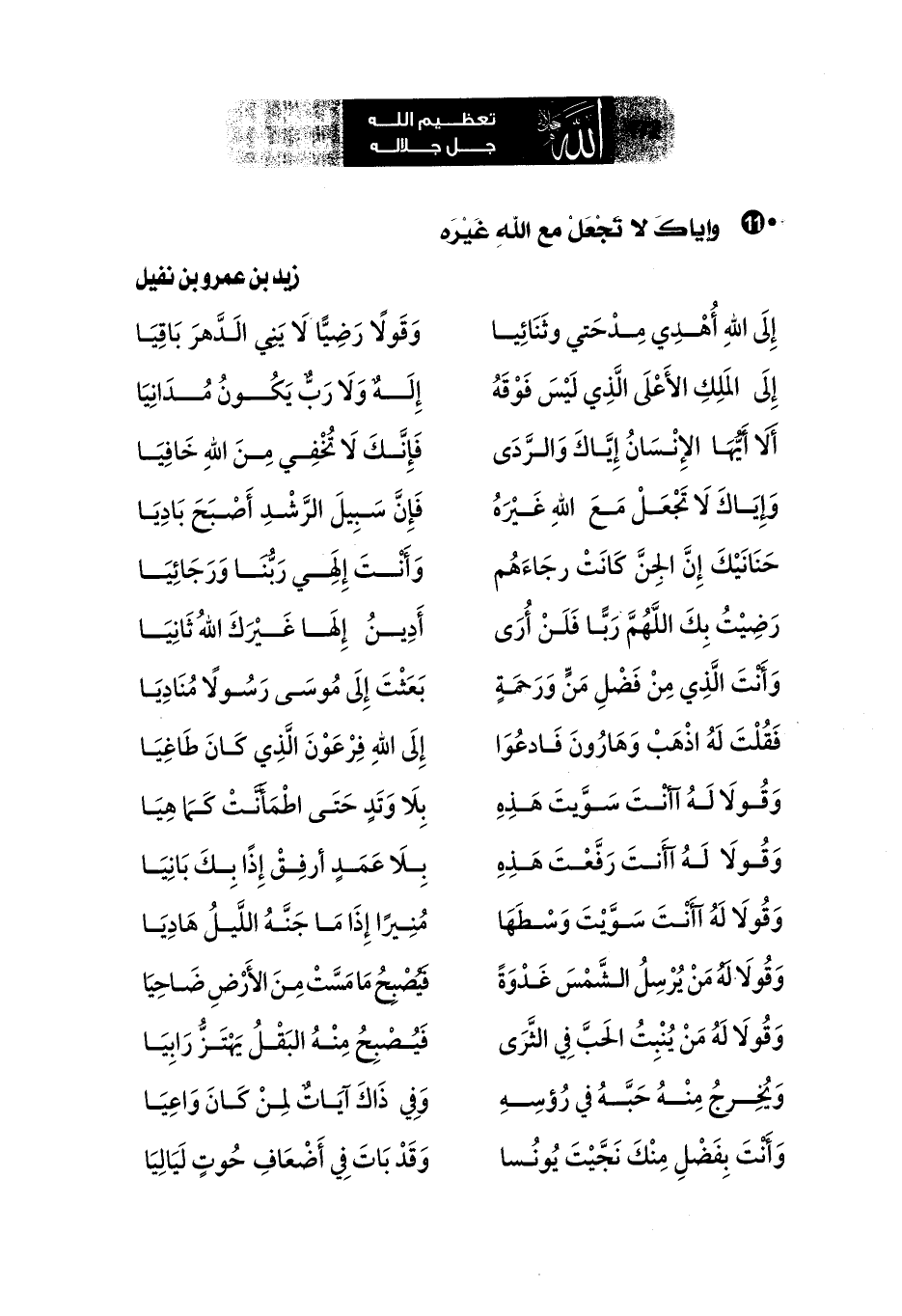 وَإِيَاكَ لَا تَجْعَلْ مَعَ اللهِ غَيْرَهُ ... فَإِنَّ سَبِيلَ الرَّشْدِ أَصْبَحَ بَادِيَا