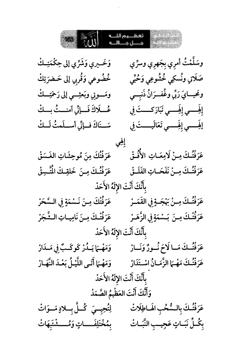 إِلَهِي إِلَهِي تَبَارَكتَ فِي ... عُلَاكَ فَإنِّي آمنتُ بكْ