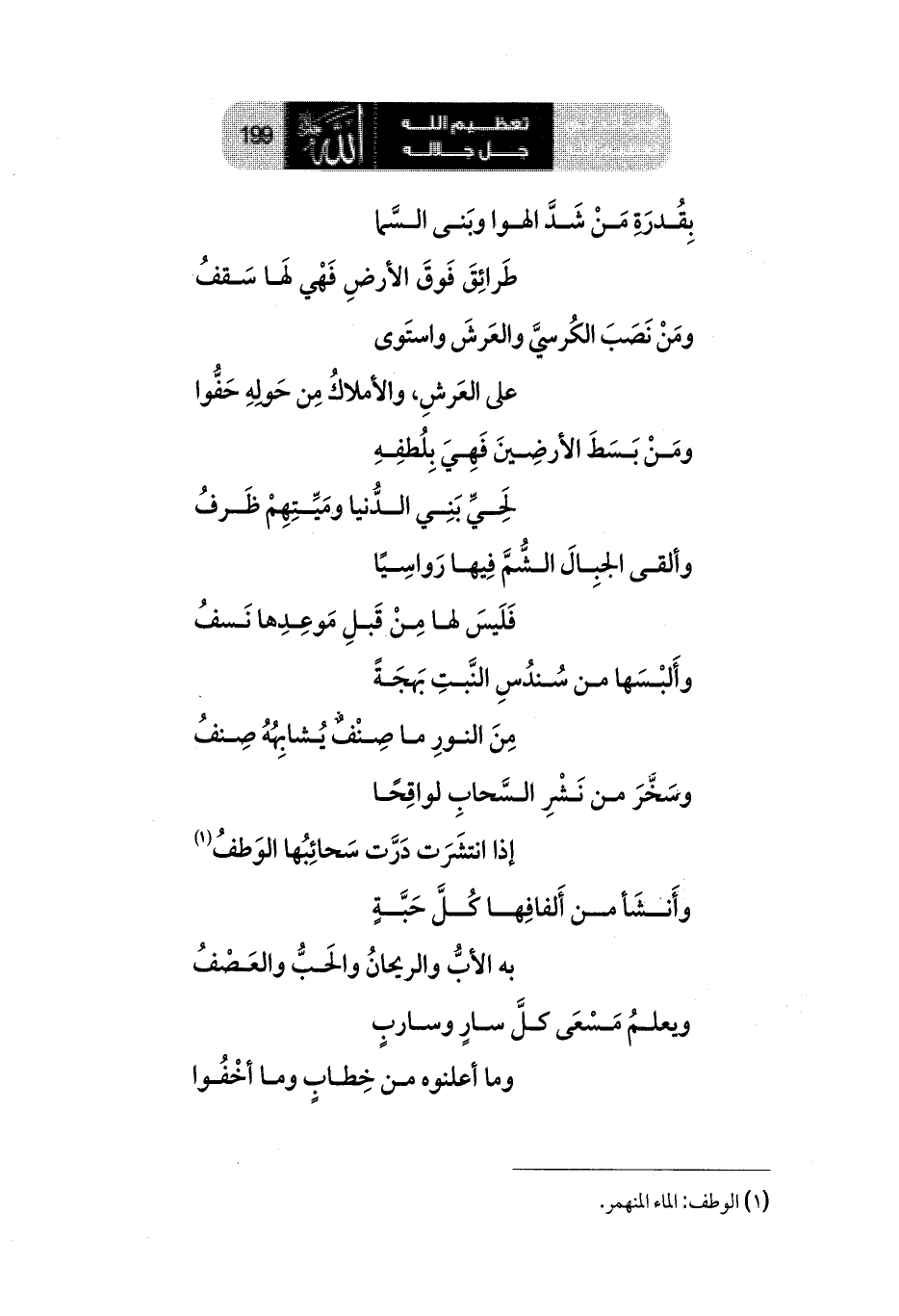 وسَخَّرَ من نَشْرِ السَّحابِ لواقِحًا ... إذا انتشَرَت دَرَّت سَحائِبُها الوَطفُ (¬1)