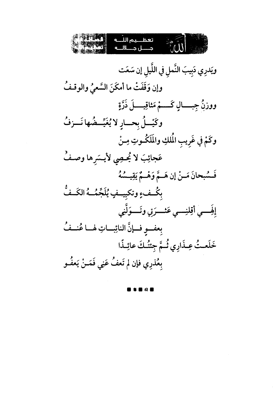 إِلَهِي أقِلنِي عَثرَتِي وتَوَلَّنِي ... بِعفوٍ فإنَّ النائِباتِ لها عُنفُ