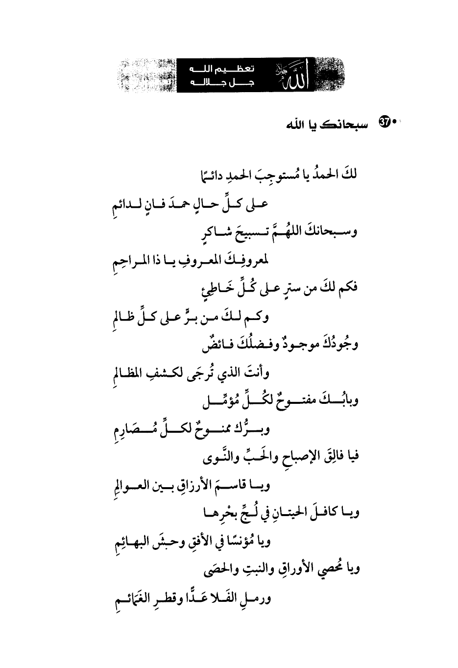ويا كافلَ الحيتانِ في لُجِّ بحْرِها ... ويا مُؤنسًا في الأفقِ وحشَ البهائِم
