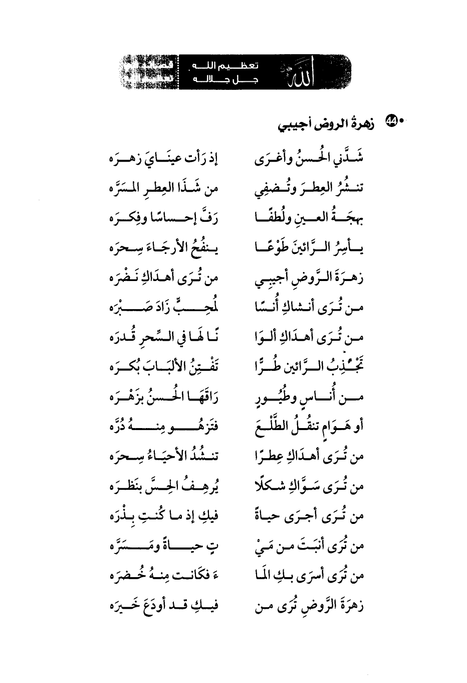 يأسِرُ الرَّائينَ طَوْعًا ... ينفُحُ الأرجَاءَ سِحرَه