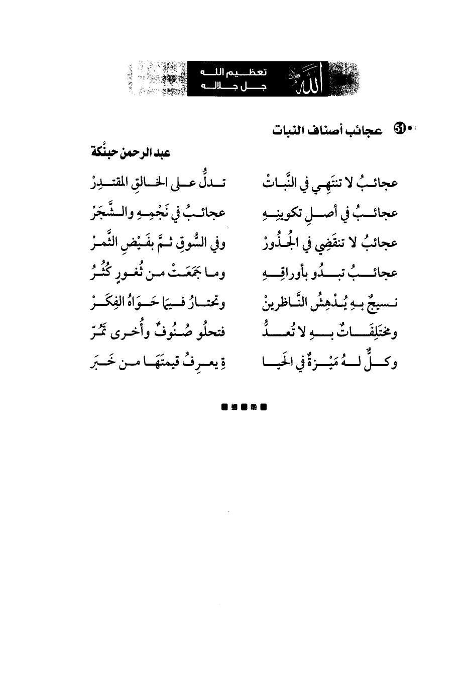 عجائبُ لا تنتَهِي في النَّباتْ ... تدلُّ على الخالقِ المقتدِرْ