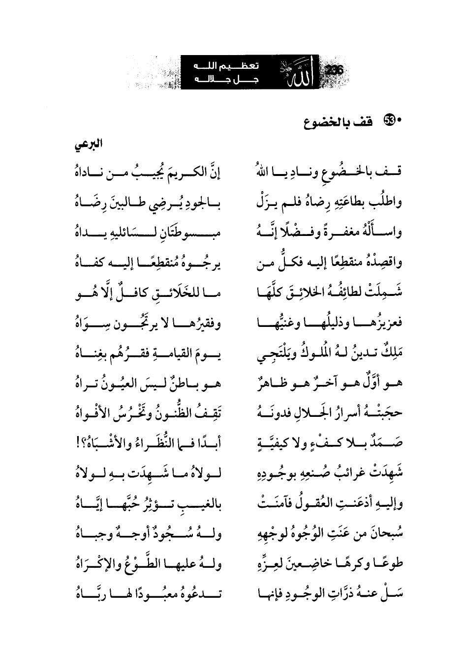 حجَبتْهُ أسرارُ الَجلالِ فدونَهُ ... تَقِفُ الظُّنونُ وتَخْرُسُ الأفْواهُ