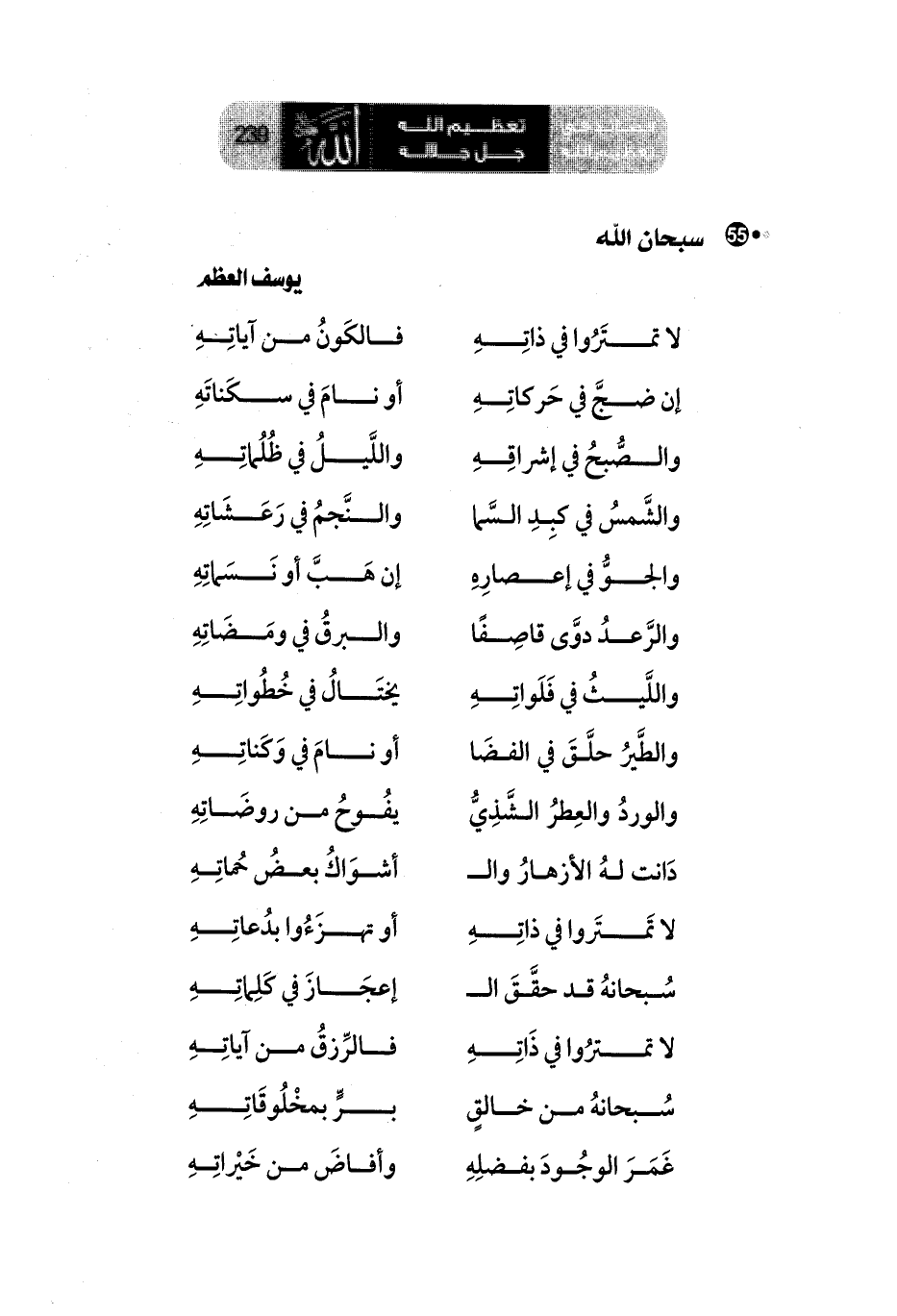 سُبحانهُ قد حقَّقَ الـ ... إعجَازَ في كَلِماتِه