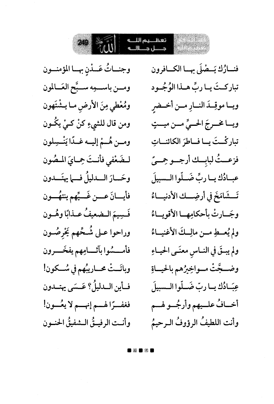 عِبَادُك يا ربّ ضَلّوا السبيلَ ... فأين الدليلُ؟ عَسَى يهتدون
