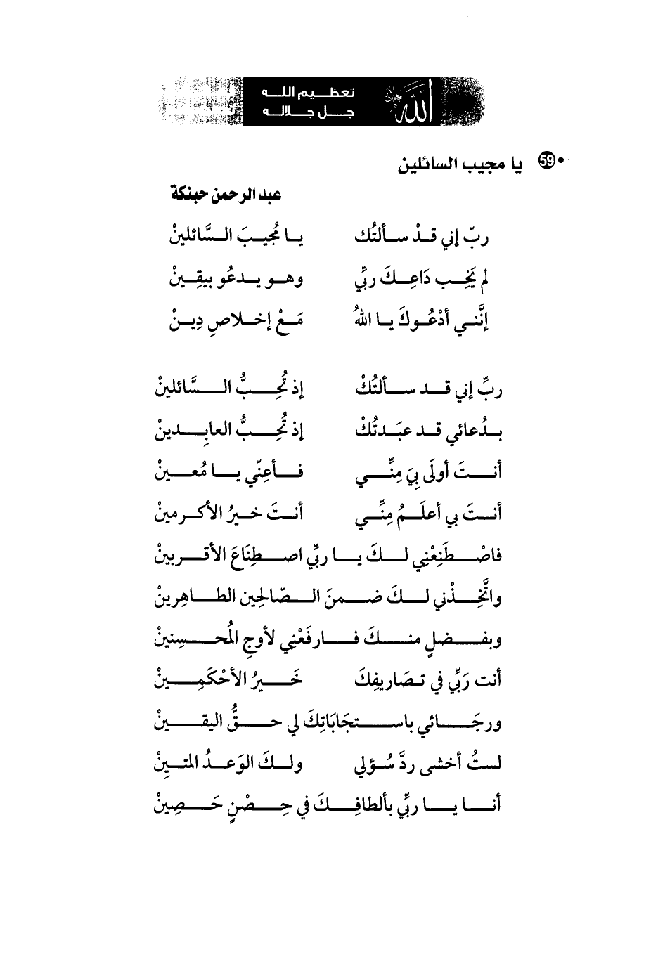 ربِّ إني قد سألتُكْ ... إذ تُحِبُّ السَّائلينْ