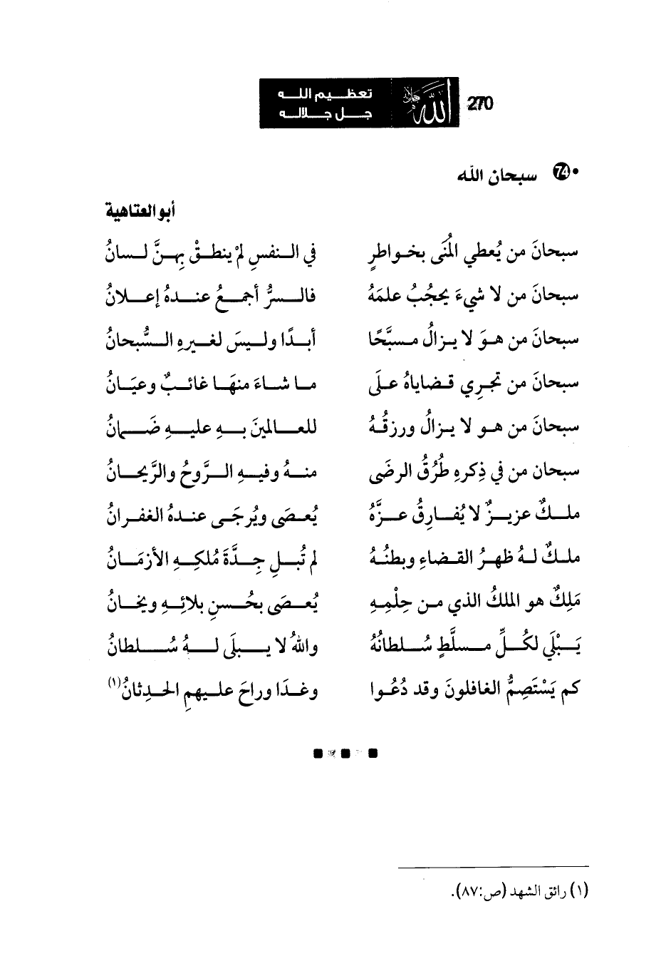 سبحانَ من هوَ لا يزالُ مسبَّحًا ... أبدًا وليسَ لغيرهِ السُّبحانُ