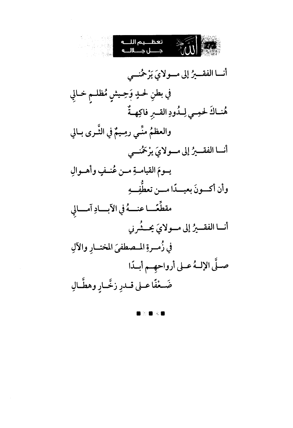 أنا الفقيرُ إلى مولايَ يرْحَمُني ... يومَ القيامةِ من عُنفٍ وأهوال